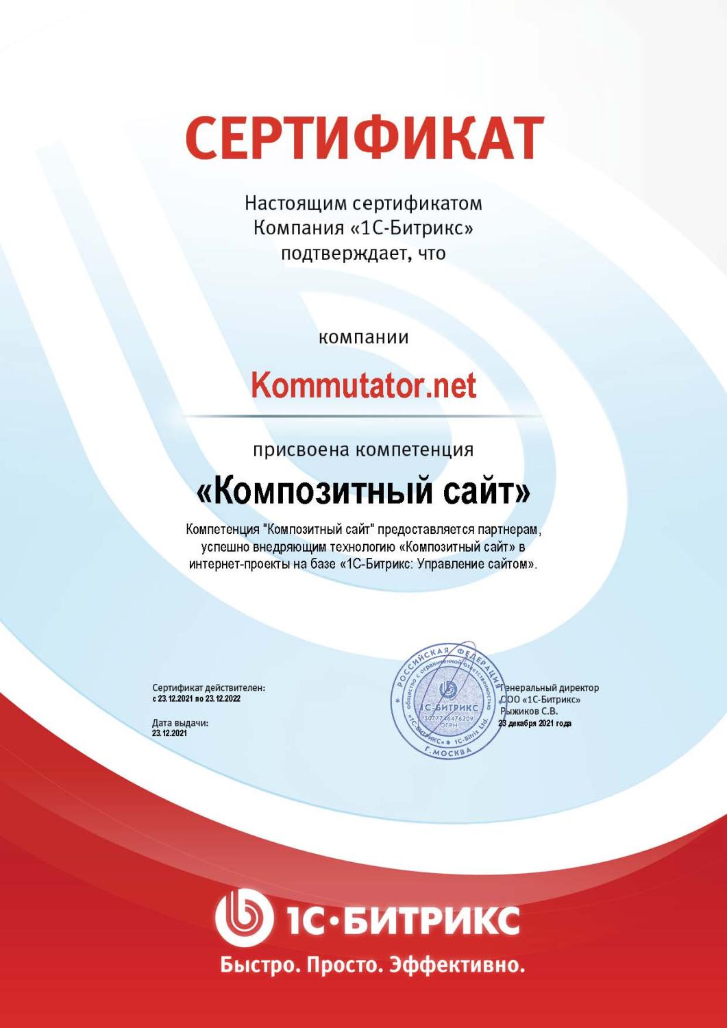 Сертифицированный партнёр 1С-Битрикс