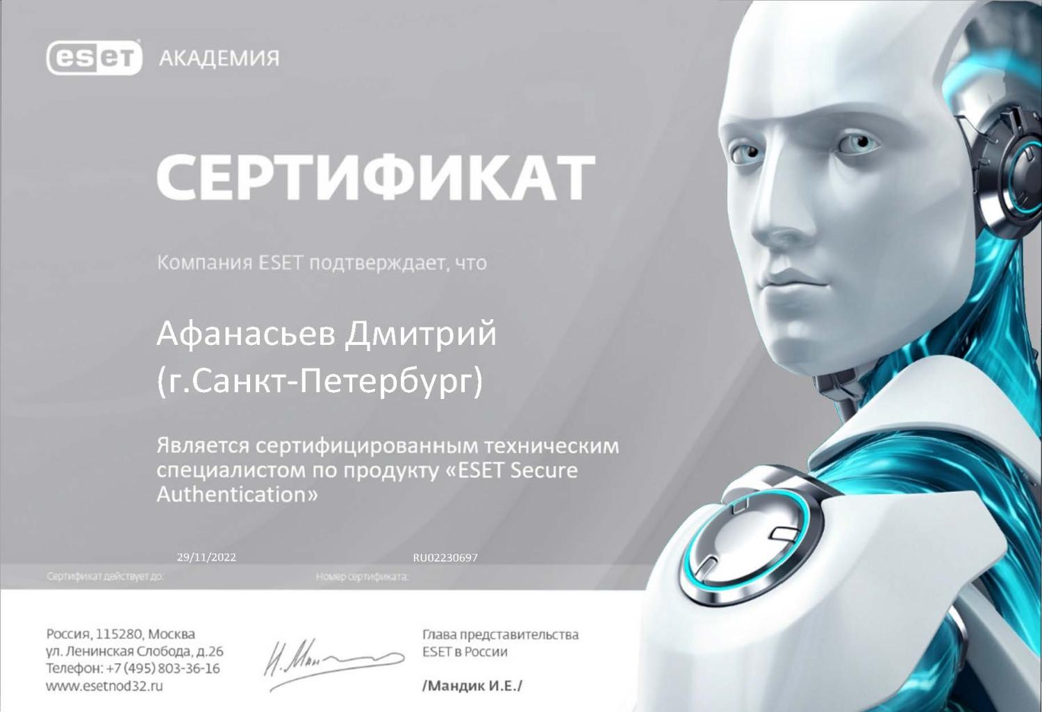 Сертифицированный технический специалист по продукту «ESET Secure Authentication»