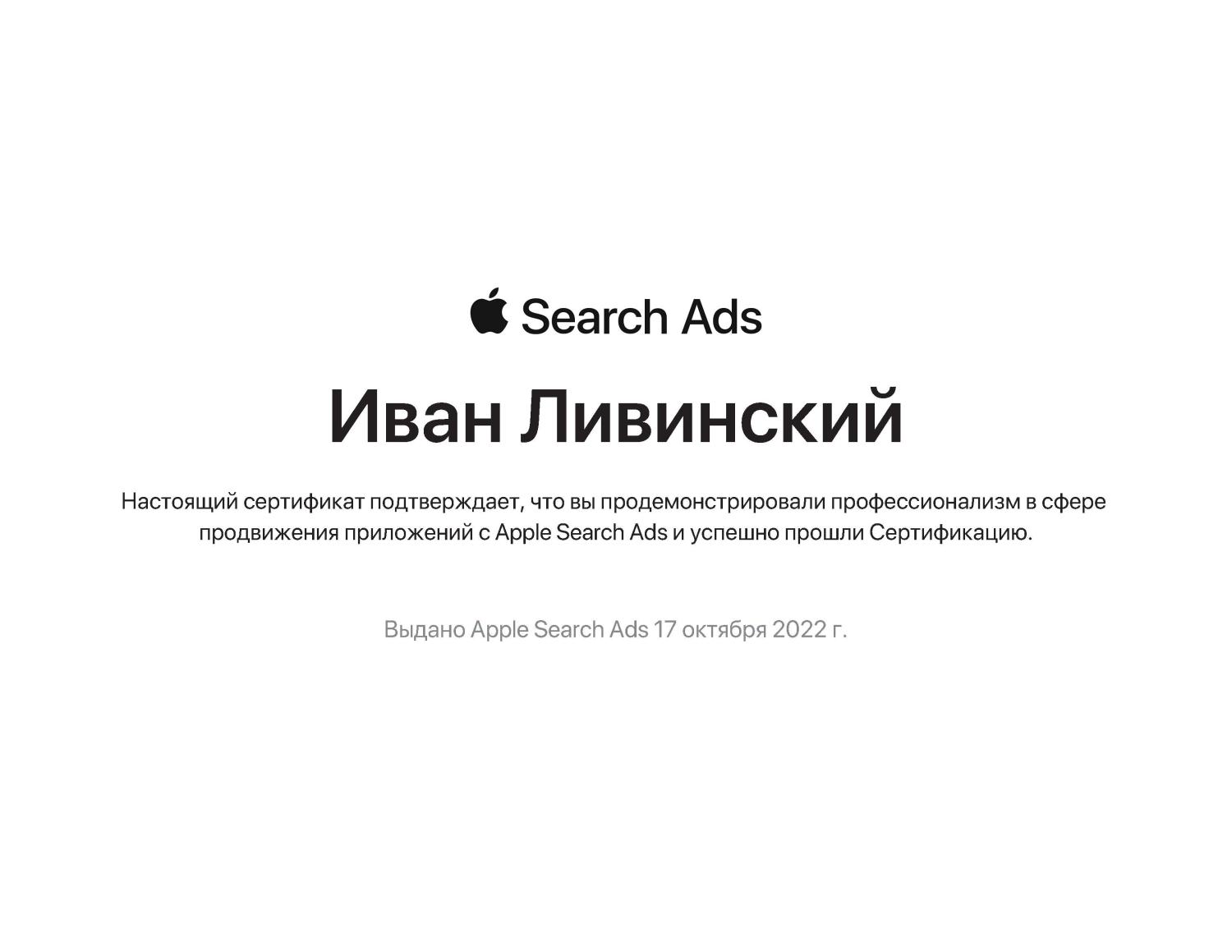 Apple Search Ads Certification Certificate