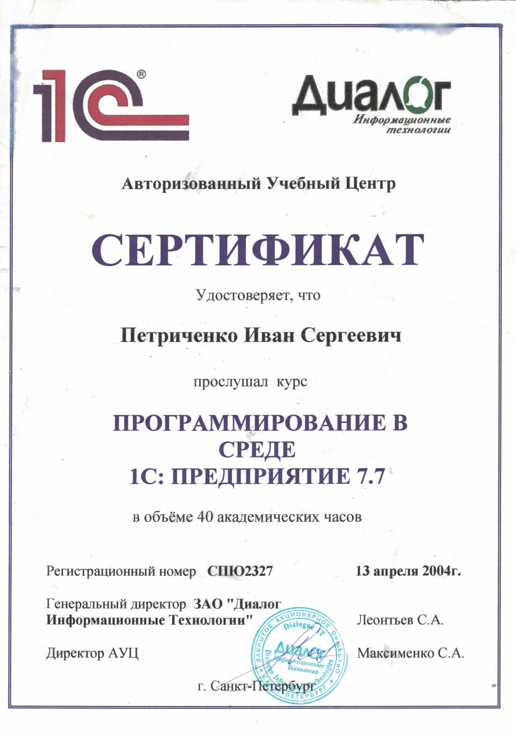 Программирование в среде 1С Предприятие 7.7
