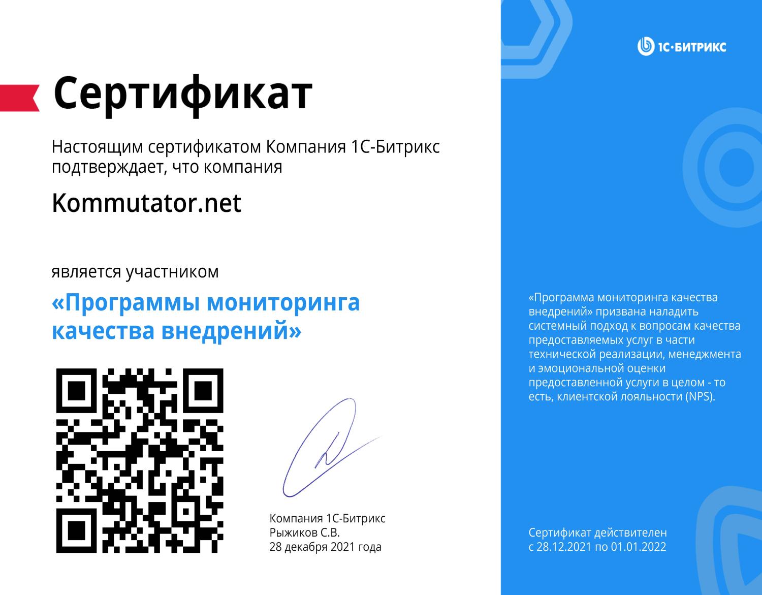 Участник программ качества 1С-Битрикс